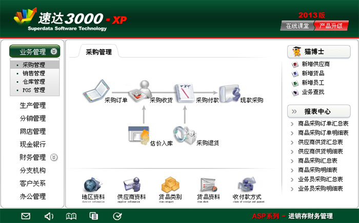 《速達(dá)3000G-XP工業(yè)版》集進(jìn)銷(xiāo)存、POS、財(cái)務(wù)、CRM、OA、生產(chǎn)為一體的中小企業(yè)管理軟件系統(tǒng)。系統(tǒng)采用導(dǎo)航式界面,易學(xué)易用、功能強(qiáng)大,是幫助中小企業(yè)規(guī)范經(jīng)營(yíng)管理、財(cái)務(wù)管理的有效工具。系統(tǒng)支持局域網(wǎng)/互聯(lián)網(wǎng)多用戶(hù)應(yīng)用,實(shí)現(xiàn)異地多機(jī)構(gòu)、多店面、多倉(cāng)庫(kù)等遠(yuǎn)程應(yīng)用,支持Android移動(dòng)終端應(yīng)用,數(shù)據(jù)實(shí)時(shí)同步,安全、穩(wěn)定、高效、易維護(hù),特別適合中小企業(yè)使用。