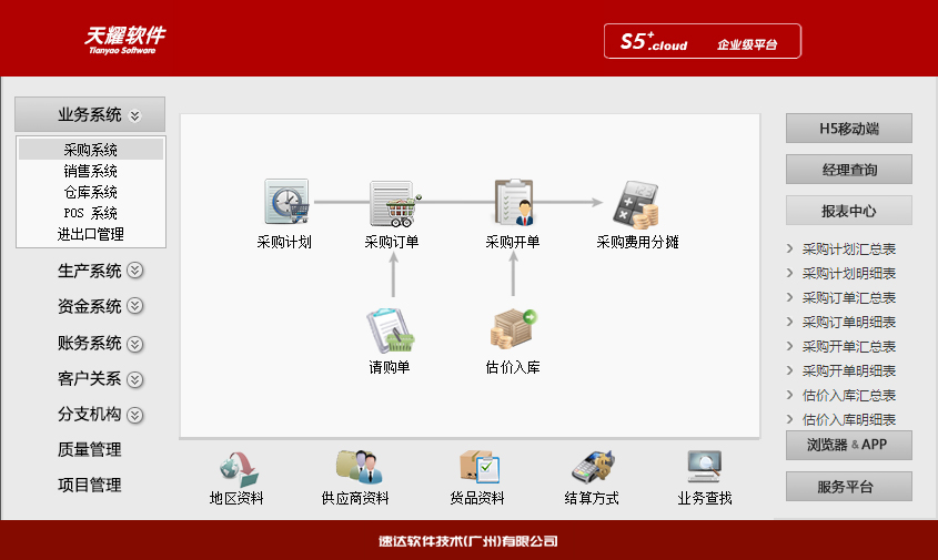 《天耀S5+.cloud》是速達(dá)軟件公司最新推出的平臺(tái)化企業(yè)管理應(yīng)用系統(tǒng)。支持云部署和桌面服務(wù)器部署及APP部署,高度滿足企業(yè)應(yīng)用平臺(tái)化的需求,實(shí)現(xiàn)了跨平臺(tái)部署應(yīng)用,大大提升了應(yīng)用效率和安全性。平臺(tái)化產(chǎn)品融入了企業(yè)經(jīng)營管理和辦公管理思想,提高了企業(yè)運(yùn)營質(zhì)量,系統(tǒng)有效的將龐大的供應(yīng)鏈業(yè)務(wù)管理和OA企業(yè)辦公同置于《天耀S5+.cloud》平臺(tái)。同時(shí)平臺(tái)支持瀏覽器端(B/S)、桌面端(C/S)、移動(dòng)應(yīng)用(APP)等多種應(yīng)用模式,真正滿足企業(yè)管理和OA辦公的個(gè)性化需求,全面提升企業(yè)綜合管理能力。