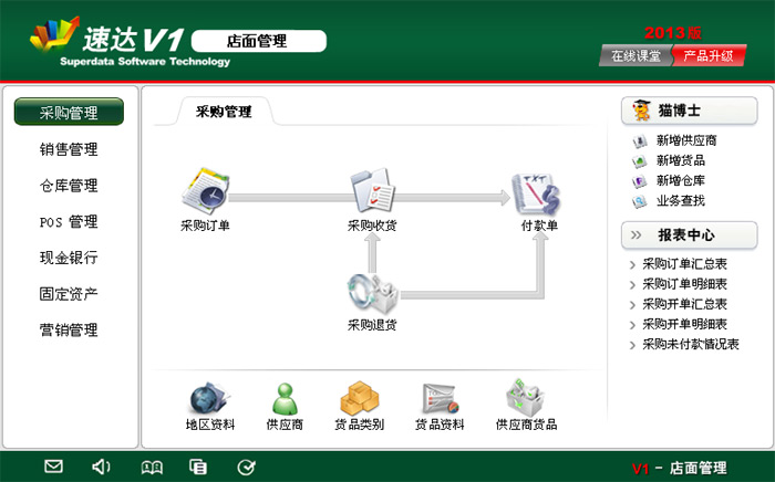 《速達(dá)V1-店面管理》軟件集進(jìn)銷存管理、POS管理、財(cái)務(wù)管理、會(huì)員管理于一體。采用導(dǎo)航式界面,易學(xué)易用、功能強(qiáng)大,特別適合專賣店、商場(chǎng)、門店等行業(yè)使用。產(chǎn)品支持局域網(wǎng)/互聯(lián)網(wǎng)多用戶應(yīng)用,數(shù)據(jù)安全、穩(wěn)定、高效、易維護(hù)。產(chǎn)品融入Builder-I報(bào)表設(shè)計(jì)工具,滿足個(gè)性化報(bào)表設(shè)計(jì)需求,全面提升企業(yè)管理能力。