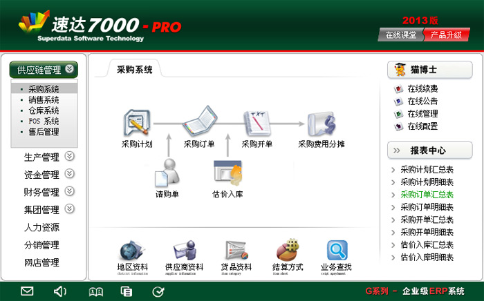 《速達(dá)7000G-PRO工業(yè)版》作為高端企業(yè)級(jí)ERP管理系統(tǒng),特別適合大中型企業(yè)使用。系統(tǒng)全面實(shí)現(xiàn)供應(yīng)鏈業(yè)務(wù)管理、生產(chǎn)管理、資金管理、財(cái)務(wù)管理、客戶關(guān)系管理、人力資源管理、辦公管理、異地分銷、遠(yuǎn)程配送、多機(jī)構(gòu)集團(tuán)化管理。系統(tǒng)通過(guò)強(qiáng)化業(yè)務(wù)流程控制,多級(jí)審批管理,有效地幫助企業(yè)實(shí)現(xiàn)業(yè)務(wù)管理、生產(chǎn)管理、財(cái)務(wù)管理的制度化。